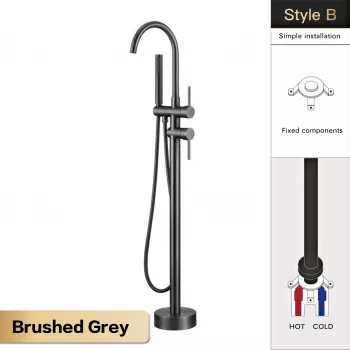 Luxury Black Floor-Standing Brass Bathtub Faucet, Double Handle, Dual Function